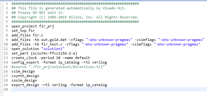 Tcl file은 Vivado HLS project를 생성할 때 프로젝트 구조에 자동으로 저장됩니다.